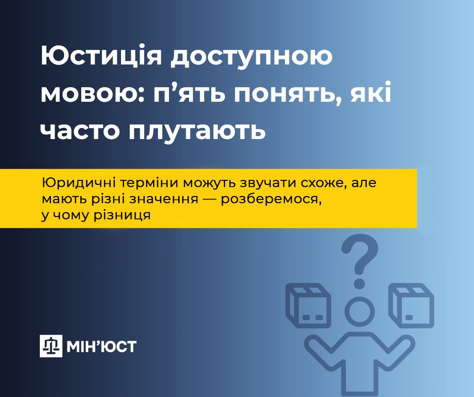 У Міністерстві юстиції пояснили різницю між юридичними термінами, які громадяни найчастіше плутають. Як зазначають у відомстві, правильне розуміння правових понять допомагає обрати ефективний спосіб захисту своїх прав.