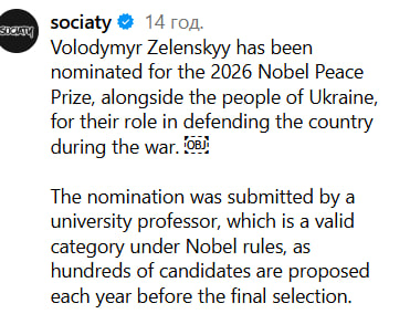 Зазначимо, що Володимира Зеленського вже неодноразово висували на Нобелівську премію миру — зокрема у 2022, 2023 та 2024 роках.