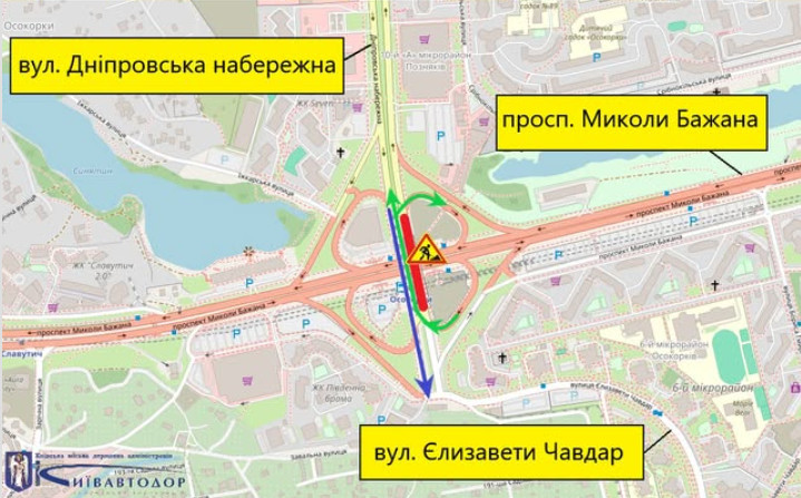 «Від 19 квітня розпочинається черговий етап робіт на ділянці шляхопроводу у напрямку від вулиці Єлизавети Чавдар до вулиці Дніпровської набережної.