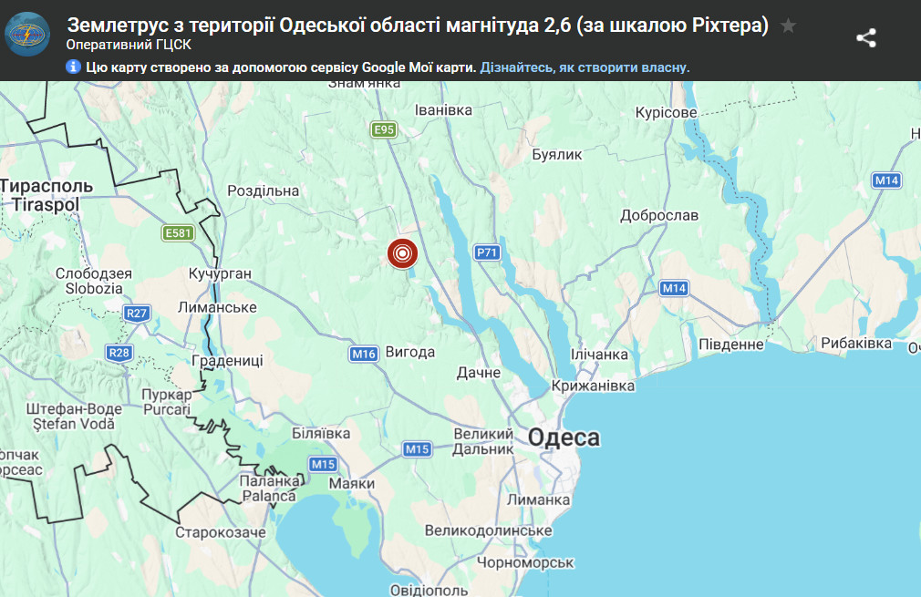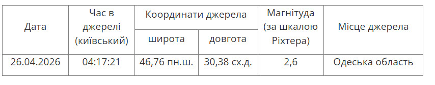 У неділю, 26 квітня, Головний центр спеціального контролю зареєстрував землетрус з Одеської області.