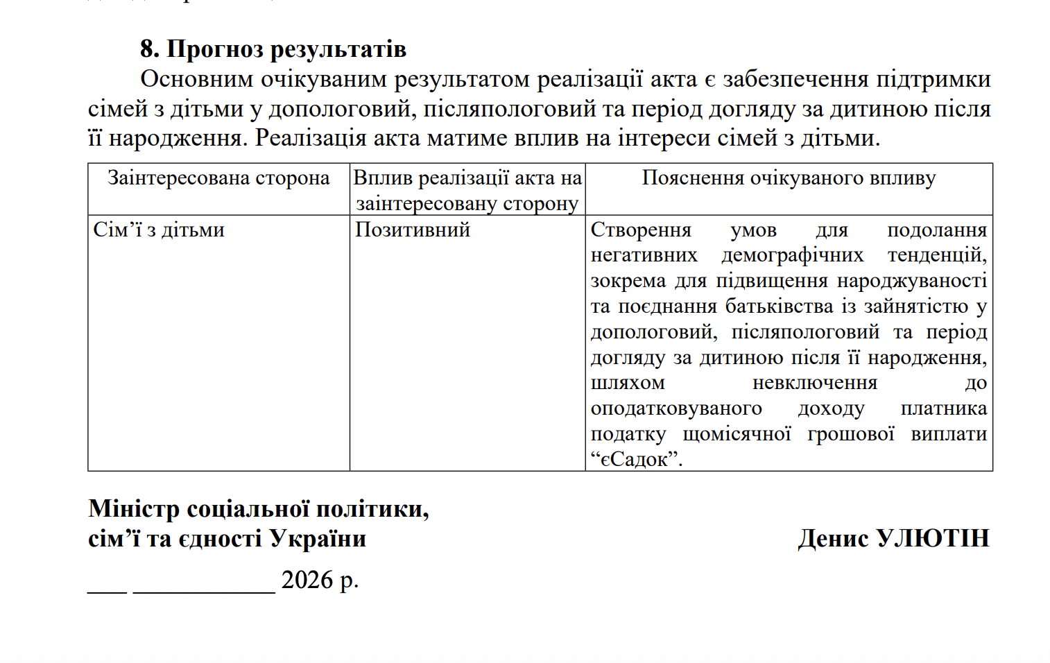 Уряд очікує, що такі зміни сприятимуть підвищенню рівня народжуваності та покращенню умов для батьків, які поєднують виховання дітей із роботою.