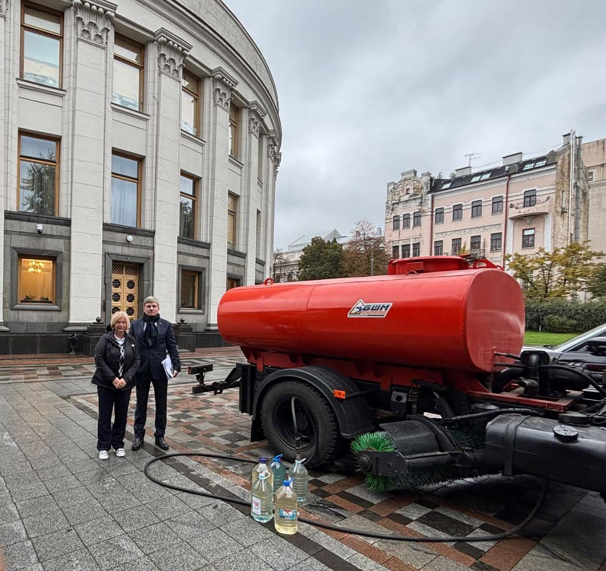 Після російського обстрілу у Києві проблеми з водою та світлом. Навіть урядовий квартал столиці залишився без водопостачання. Як повідомила народна депутатка Ірина Геращенко, до Верховної Ради підвезли машину з технічною водою для базових потреб парламенту.