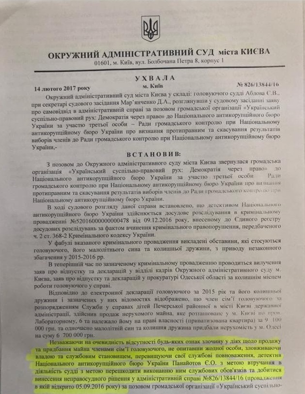 До речі, матеріали щодо незаконності дій детектива НАБУ вже були предметом розгляду ВРП. Тоді Вища рада погоджувалась з доводами судді Аблова, що дії з реєстрації детективами НАБУ цього кримінального провадження є явним втручанням у його діяльність. І от тепер абсолютно протилежна позиція того самого органу з того самого питання! У ній Вища рада правосуддя суперечить сама собі. Ми не настільки наївні, щоб не розуміти, що в цьому є чиясь серйозна зацікавленість. Тим більше, напередодні власної відставки.