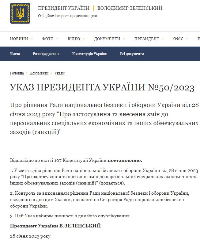 В субботу, 28 января, Президент Владимир Зеленский ввел в действие решение СНБО о санкциях против 185 юридических и физических лиц, которых рф использует для перевозки по железной дороге личного состава и военной техники. Соответствующий указ появился на официальном сайте Главы государства.