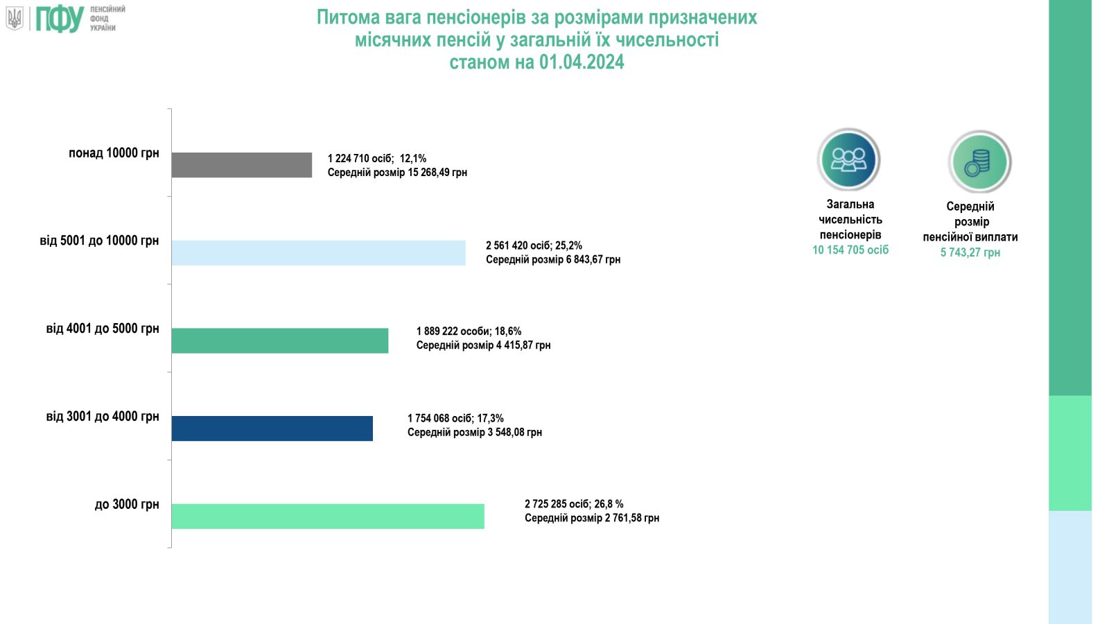 - понад 10 тис. грн — 12,1%, середня пенсія — 15 268,49 грн.