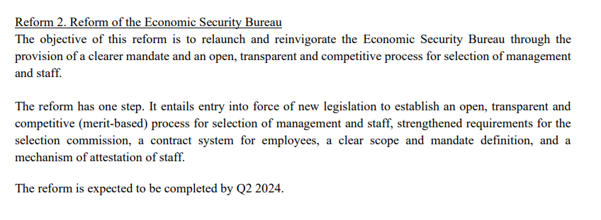 Для цього Україна має у другому кварталі 2024 року виконати 9 кроків, серед яких набрання чинності Законом про перегляд нормативно-правової бази БЕБ.